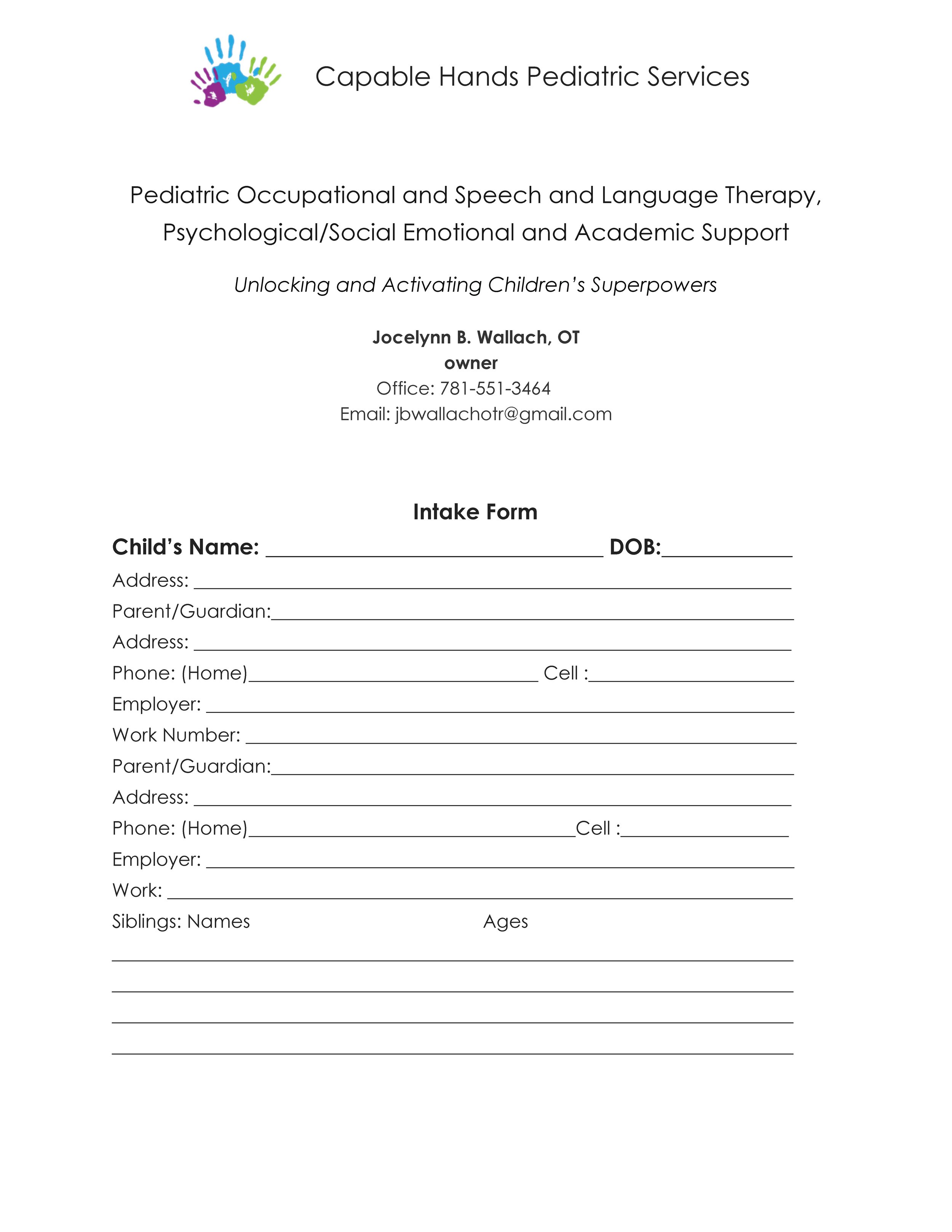 Downloadable Intake Form